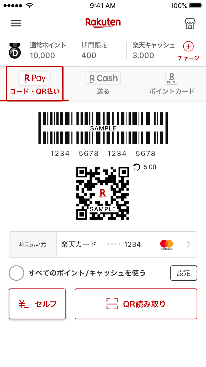 40,000円(楽天キャッシュ)+ 5,400円(楽天ポイント)= 45,400円(楽天ペイ)